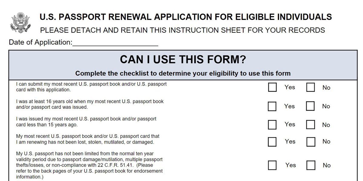 This form is also known as a us passport renewal application. Passport renewal application for eligible individuals avacontroln0. Instruction page 4 of 4. This form is available online and can be easily completed via the website. The form and detailed instructions can be downloaded below.